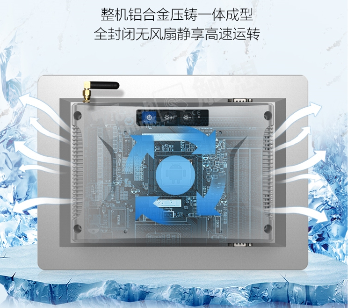 基于心電儀長時間運行的工作轉(zhuǎn)態(tài),在散熱方面工業(yè)安卓一體機完全沒有壓力。整機一體壓鑄成型,全封閉無風(fēng)扇設(shè)計(可定制有風(fēng)扇),后蓋圓弧散熱孔設(shè)計,杜絕粉塵、水滴進入機器內(nèi)部的同時,也保障了機器的散熱性。同時,無風(fēng)扇設(shè)計運行更靜音,無需擔(dān)心機器運行產(chǎn)生噪音而打擾病房安靜。