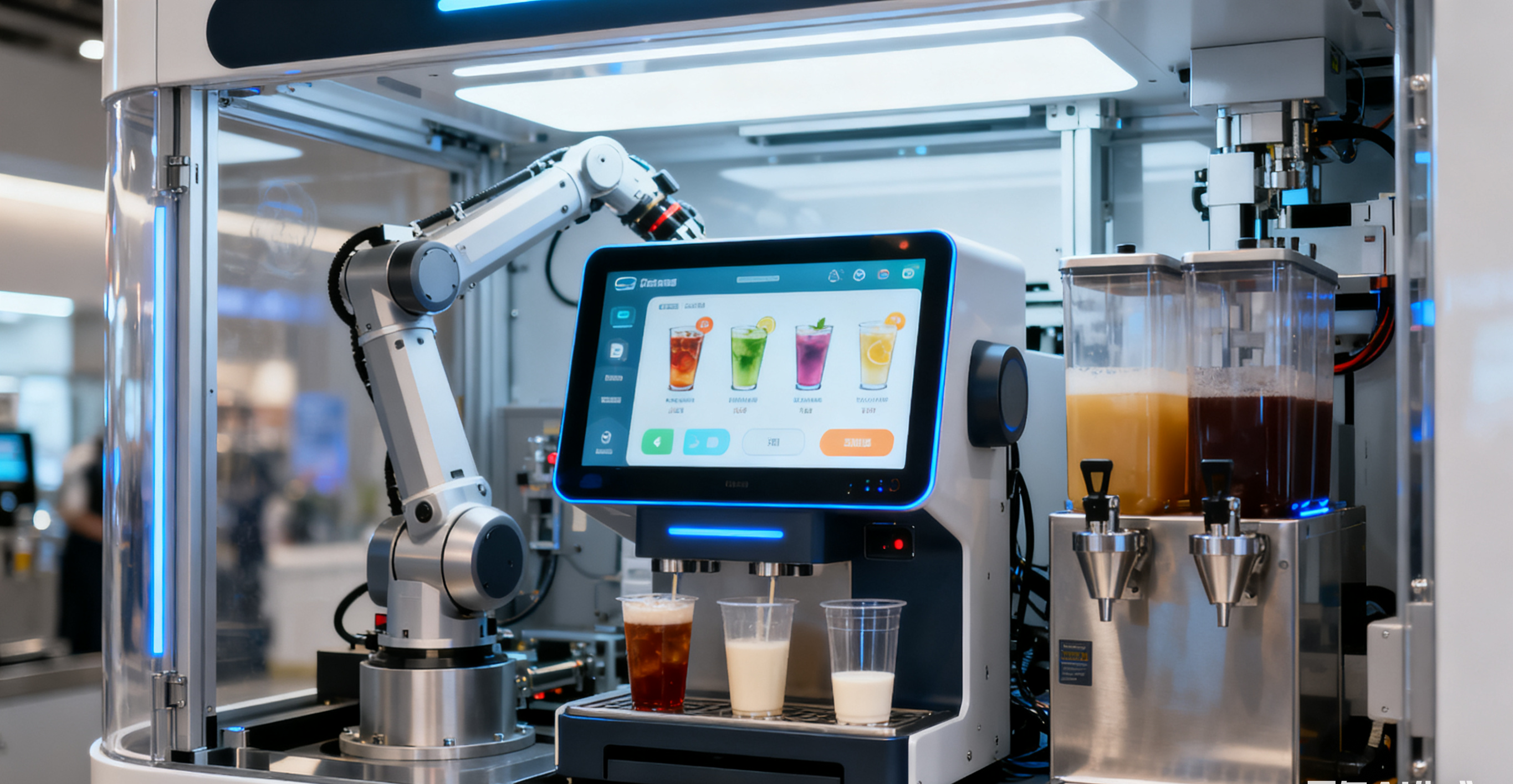 工業(yè)一體機搭載高性能處理器(如四核架構(gòu),主頻1.8GHz),運行實時操作系統(tǒng),負責處理飲品制作流程中的復雜邏輯。例如,在智能奶茶機中,一體機通過解析用戶選擇的糖度、冰量、配料組合,實時驅(qū)動泵閥系統(tǒng)完成從配料到出杯的全流程自動化控制,效率提升3倍以上。